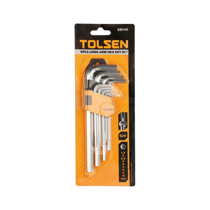Ключі шестигранні Tolsen, довгі, 1.5-10мм, CrV, набір 9шт