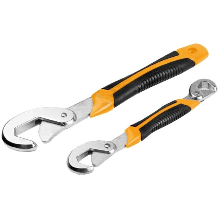 Набір універсальних ключів Tolsen (2 шт, 210 та 280 мм) з діапазоном захвату 9–32 мм призначений для відкручування та закручування болтів і гайок у зонах з вільним доступом. Виготовлені з міцної вуглецевої сталі з хромованим покриттям та зручними двокомпонентними ручками. Ідеальні для ремонту автомобілів і побутових робіт.