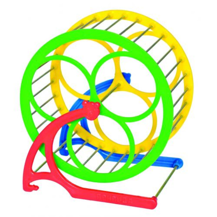 Це не тільки розвага, а й можливість підтримувати м'язи в тонусі, нормалізувати обмін речовин, задовольнити природну потребу в русі. Яскраве колесо на стійкій підставці виготовлено з якісної пластмаси, яка не містить токсичних або небезпечних для тварин речовин. Поперечини зроблені з міцного дроту. Аксесуар легко миється, простий у догляді і додасть інтер'єру клітки святкового вигляду. За бажанням колесо можна встановити поза межами клітки, але не слід залишати в ньому звірятко без нагляду.