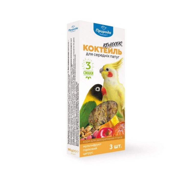 Колосок Природа "Коктейль" для середніх папуг 90 г (мультифрукт, горіх, цитрус)