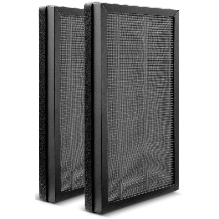 Комплект фільтрів H13 з високою часткою активованого вугілля і антибактеріальним покриттям надійно очищає повітря від шкідливих домішок, що містяться в ньому. Ефективність фільтрації становить 99,95% для частинок діаметром 0,3 мкм. Фільтри затримують пил (в т. ч. тонкий), аерозольні частинки та мікроорганізми, включаючи віруси. Крім того, антибактеріальне покриття матеріалу фільтра знищує мікроорганізми, а шар активованого вугілля усуває запахи та затримує пари хімікатів, леткі органічні сполуки та інші шкідливі речовини.