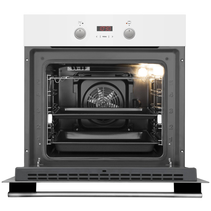 Комплект Hansa FCGW683299 поєднує електричну духову шафу та газову варильну поверхню зі скляним покриттям у білому кольорі. Духовка з паровим очищенням і 8 режимами нагріву забезпечує рівномірне приготування страв, оснащена галогенним підсвічуванням і телескопічними напрямними. Варильна поверхня має 4 газові конфорки від Somipress, чавунні решітки, електропідпал у ручках та захист від згасання полум’я.