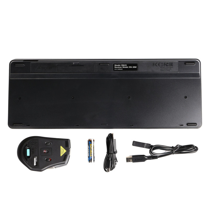 клавіатура, миша, USB-приймач, батарейки, документація