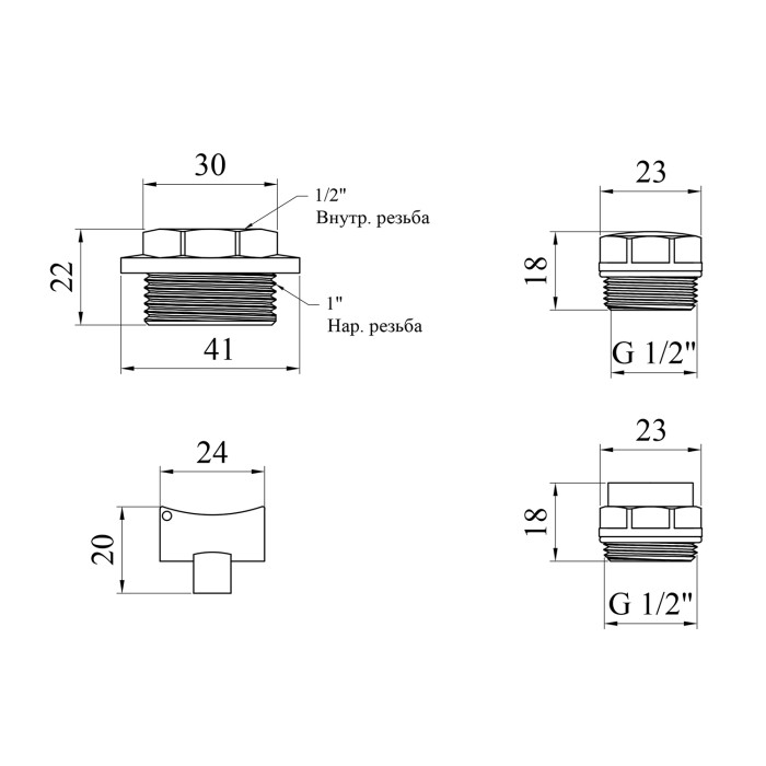 Кран Маєвського, заглушка, ключ для крана Маєвського, футорки