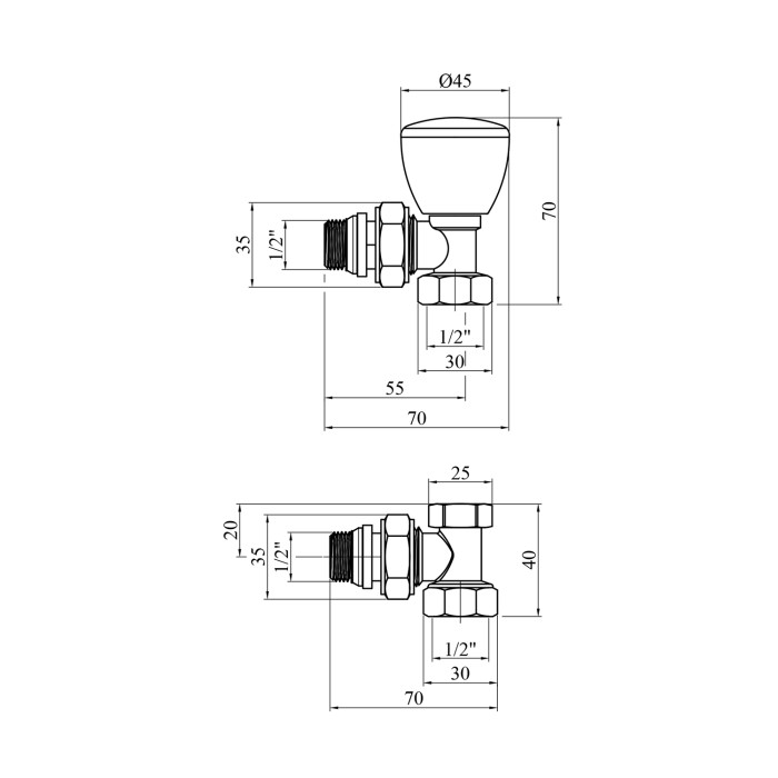 Комплект радіаторних кутових кранів (верхній+нижній) Karro 1/2" має білий колір, що дозволяє стати непомітним в інтер'єрі. Оскільки обидва пристрої виготовлені з латуні, вони здатні прослужити до 30 років. Великою перевагою є наявність у наборі верхнього та нижнього крана для радіатора Karro. Це дає змогу одразу встановити прилади на місце та відрегулювати роботу батареї опалення. До того ж їхнє встановлення дає можливість відключати елементи системи опалення в разі їхньої поломки під час опалювального сезону. Головним достоїнством комплекту радіаторних кутових кранів Karro є їх латунний корпус, мають декоративне покриття. Він не боїться високих температур і іржавіння.
