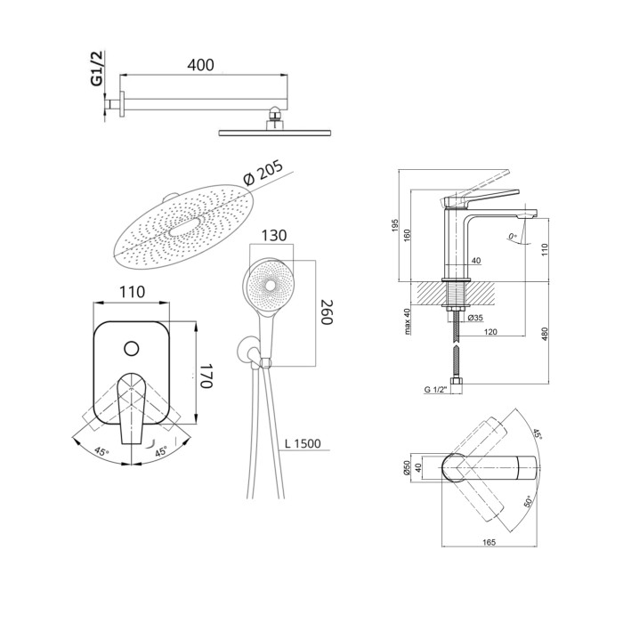 Душевая система (QTSLA113BLM45900), смеситель (QTSLA1042103B)
