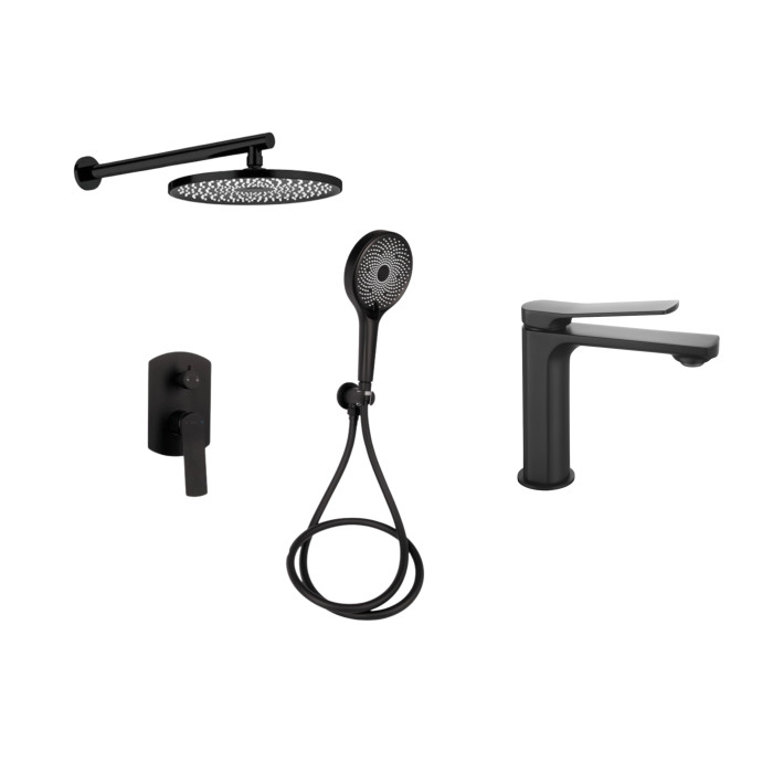Комплект смесителей Qtap Slavonice: Душевая система QTSLA113BLM45900 + Смеситель для раковины QTSLA1042103B