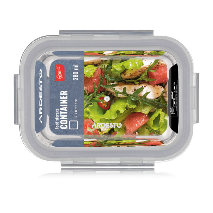 Контейнер для хранения пищевых продуктов Ardesto Gemini 0.38л, боросиликатное стекло, пластик, прямоугольный, прозрачный