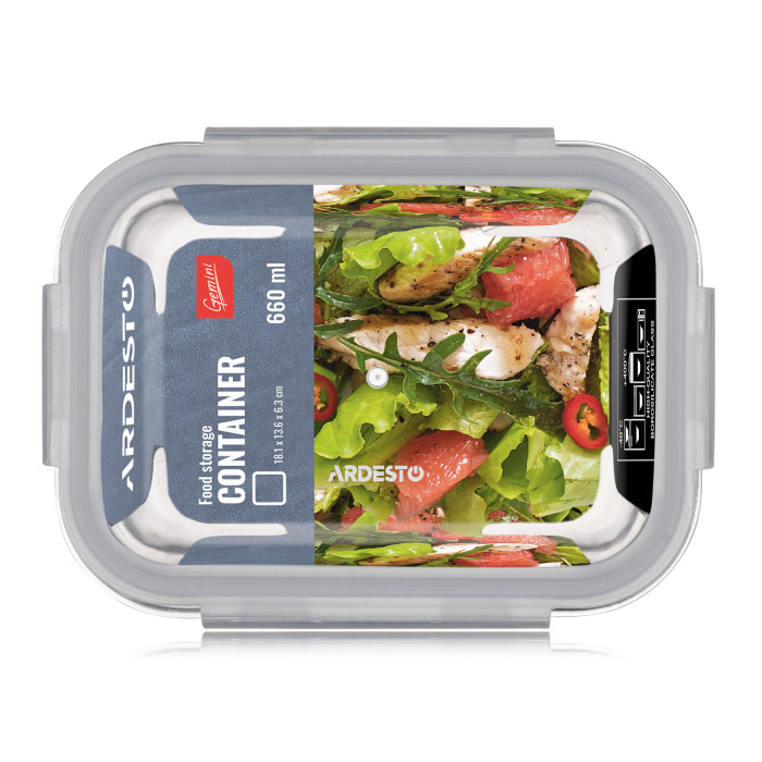 Контейнер для хранения продуктов питания Ardesto Gemini 0.66л, боросиликатное стекло, пластик, прямоугольный, прозрачный