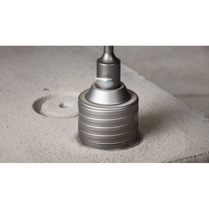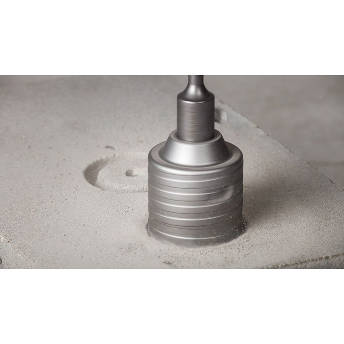 Коронка по бетону Neo Tools 55-321 призначена для свердління отворів у бетоні з використанням перфоратора SDS+. Біметалічна конструкція забезпечує стабільну форму під час роботи. Діаметр коронки становить 65 мм, що підходить для монтажних отворів. Робоча висота 72 мм дозволяє виконувати стандартні операції. У комплект входить пілотне свердло та адаптер SDS+.