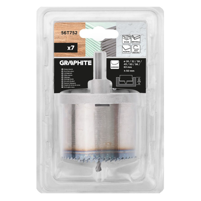 Коронки по дереву GRAPHITE загартовані зубці 26-63х50мм 7шт