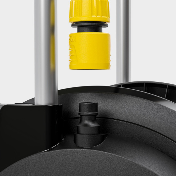 Міцний візок для шланга Karcher дає змогу зберігати садовий шланг з економією місця і дуже зручний у застосуванні. Акуратне змотування шланга забезпечується ергономічною кривошипною рукояткою. Крім того, візок вирізняється дуже широкою опорою, що гарантує високу стійкість, а також стійкістю до впливу морозу і УФ-випромінювання. У комплект поставки входять шланг довжиною 20 м, розпилювач та інші аксесуари для поливу. Завдяки інноваційним швидкодіючим затискачам телескопічна ручка візка легко встановлюється на необхідній висоті або повністю зсувається вниз. Kärcher надає на візок 5-річну гарантію. Він поставляється в змонтованому стані.