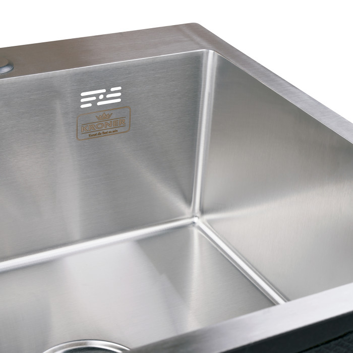 Кухонна мийка Kroner KRP Gebürstet - 5050HM (3.0/1.0 мм) - ідеальний вибір для вашої кухні! Ця квадратна мийка з інтегрованим монтажем легко впишеться в будь-який інтер'єр. Виготовлена з високоякісної нержавіючої сталі, забезпечуючи довгий термін служби. Практичний додаток - вбудований отвір для дозатора миючого засобу. З мийкою від Kroner ви отримуєте не тільки функціональний товар, але й стильний аксесуар, який зробить вашу кухню ще зручнішою і привабливішою.
