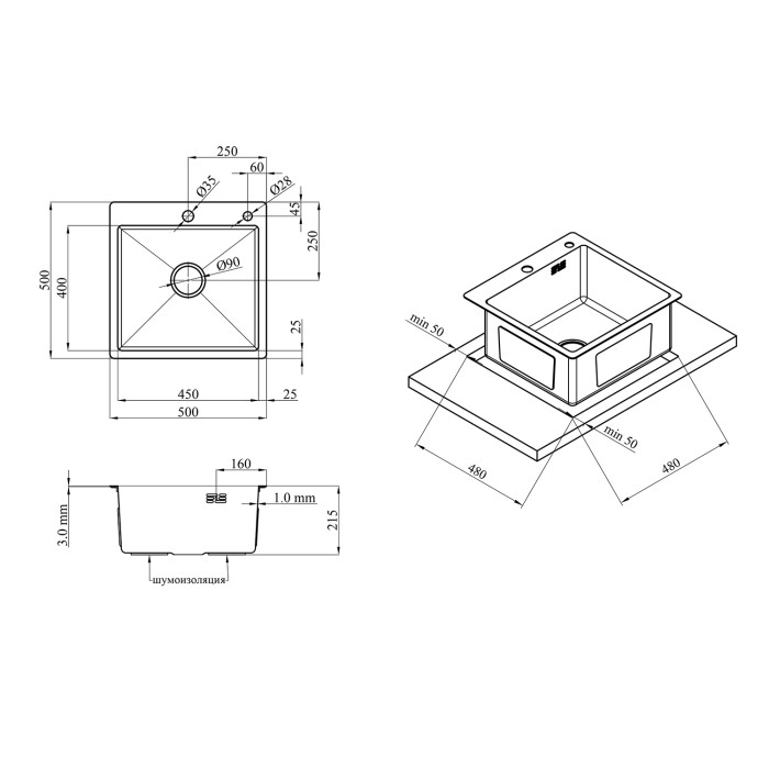 Кухонна мийка Kroner KRP Gebürstet - 5050HM (3.0/1.0 мм) - ідеальний вибір для вашої кухні! Ця квадратна мийка з інтегрованим монтажем легко впишеться в будь-який інтер'єр. Виготовлена з високоякісної нержавіючої сталі, ... Читать далее...