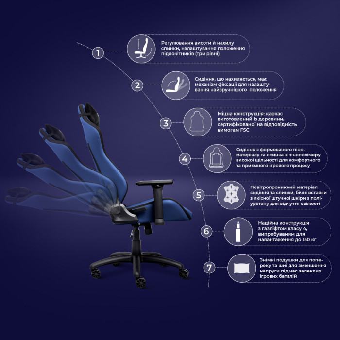 Крісло Trust GXT714B Ruya ECO, ПУ шкіра, 3D-Armrests, синій