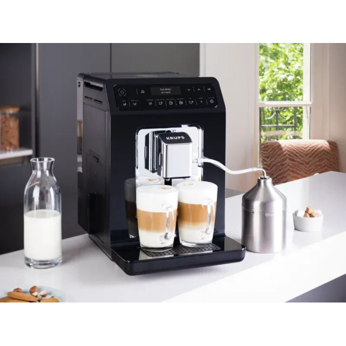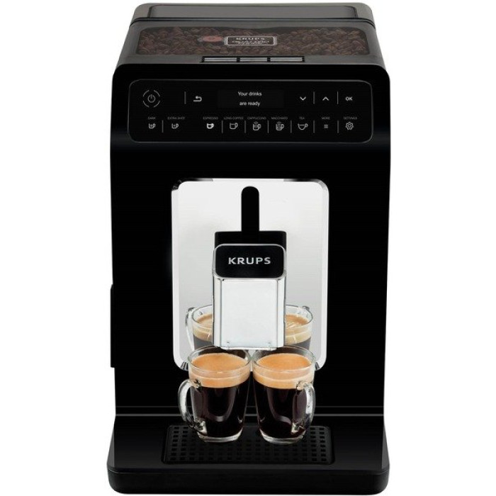 съемный поддон для капель, система KRUPS Quattro Force, съемный капучинатор, подача горячей воды для чая, система One-Touch-Cappuccino