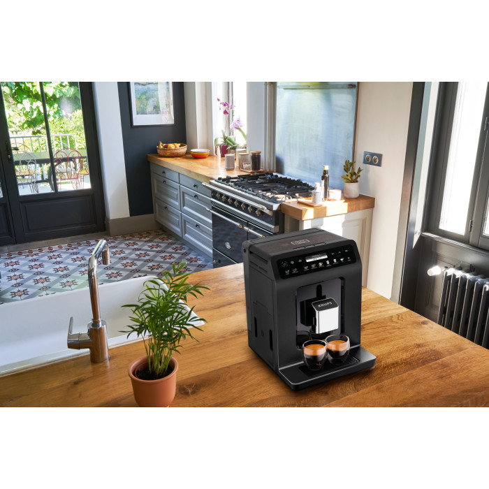 С автоматической кофеваркой KRUPS Evidence Plus можно одним прикосновением приготовить потрясающий ароматный кофе как настоящий барист. Благодаря 19 установленным и регулируемым программам всегда можно получить идеальный напиток из только что смолотых зерен кофе, соответствующий вкусу. Можно выбрать 6 рецептов и запустить нажатием только одной кнопки. Инновационная и интуитивная широкая цветная сенсорная панель OLED-дисплея поможет быстро и легко управлять кофеваркой. Коническая кофемолка из нержавеющей стали эффективно и на высокой скорости измельчает зерна до нужного помола. Уникальная технология KRUPS QUATTRO FORCE сделает привычный домашний кофе произведением искусства.