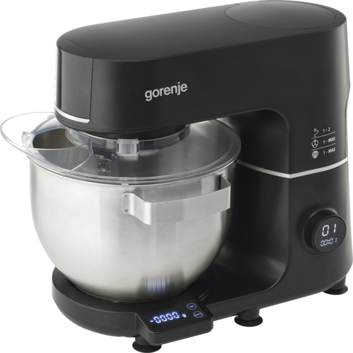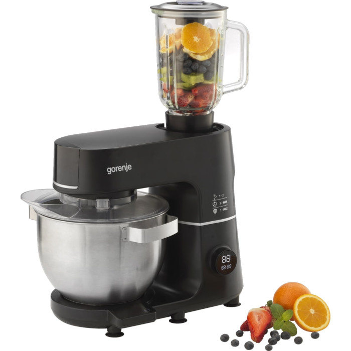 Кухонна машина Gorenje 1000Вт, дисплей, чаша-метал, корпус-метал+пластік, насадок-7, чорний