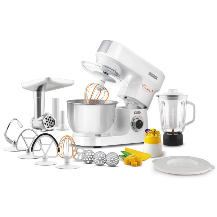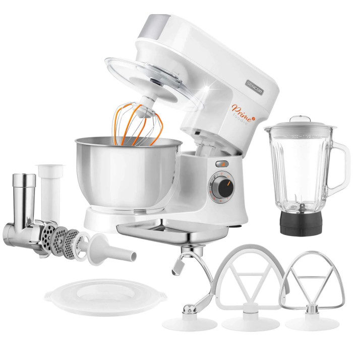 Кухонна машина Sencor 1000Вт, чаша-метал, корпус-пластик, насадок-12, білий