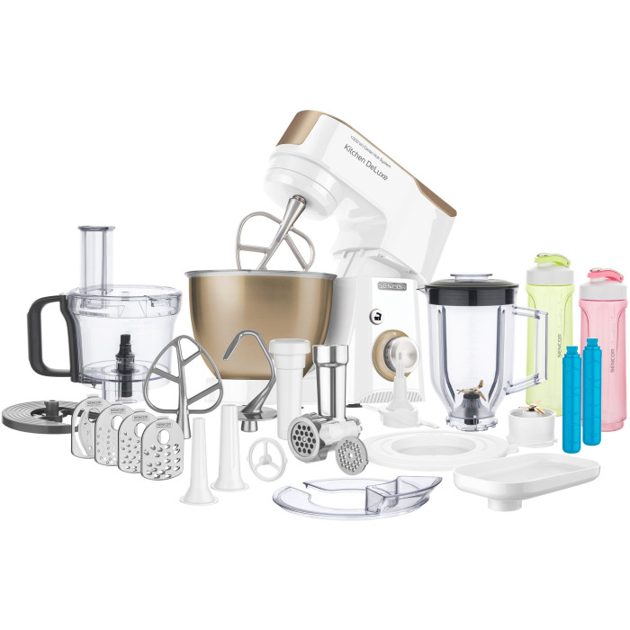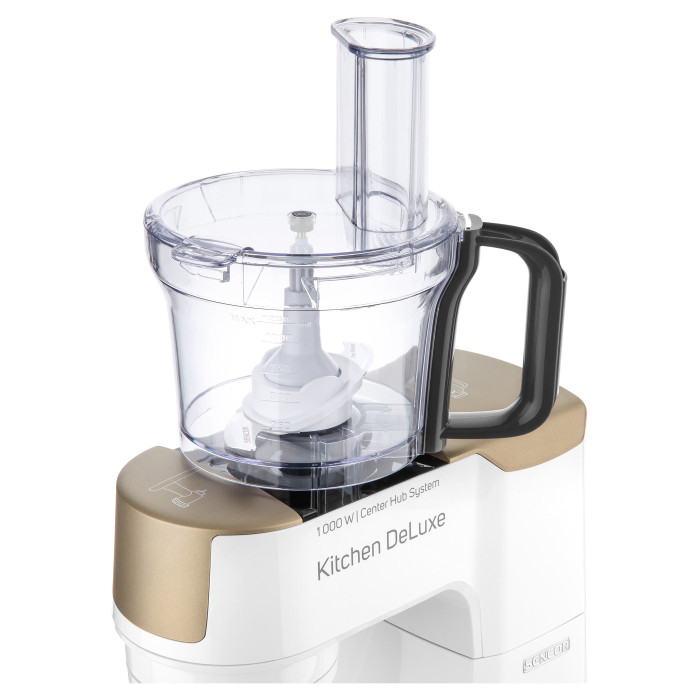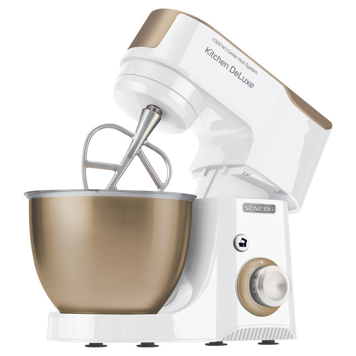 Кухонна машина Sencor 1000Вт, чаша-метал, корпус-пластик, насадок-15, біло-золотий