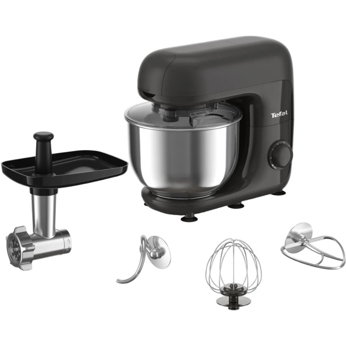 Кухонна машина Tefal Bake Essential 800Вт, чаша-метал, корпус-метал/пластик, насадок-4, чорний