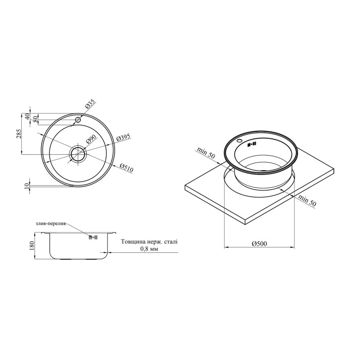 Кухонна мийка Kroner KRP Dekor - 510 (0,8 мм) - ідеальне рішення для сучасної кухні. Завдяки своїй круглій формі і стильному дизайну вона впишеться в будь-який інтер'єр. Врізний спосіб монтажу дозволяє легко і безпроблемно встановити мийку. Виготовлена з високоякісної нержавіючої сталі, що забезпечує довгий термін служби і легку очистку. Функціональна, надійна та естетично приваблива - мийка від Kroner стане незамінним помічником у приготуваннях та прикрасою вашої кухні.