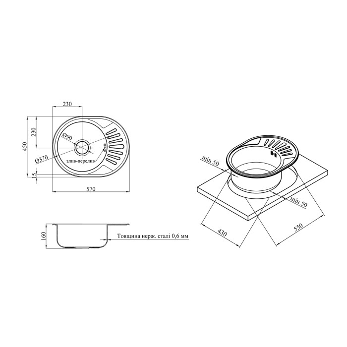 Кухонна мийка Kroner KRP Dekor - 5745 (0,6 мм) - ідеальне рішення для сучасної кухні. Завдяки своїй овальній формі і стильному дизайну вона впишеться в будь-який інтер'єр. Врізний спосіб монтажу дозволяє легко і безпроблемно встановити мийку. Виготовлена з високоякісної нержавіючої сталі, що забезпечує довгий термін служби і легку очистку. Функціональна, надійна та естетично приваблива - мийка від Kroner стане незамінним помічником у приготуваннях та прикрасою вашої кухні.