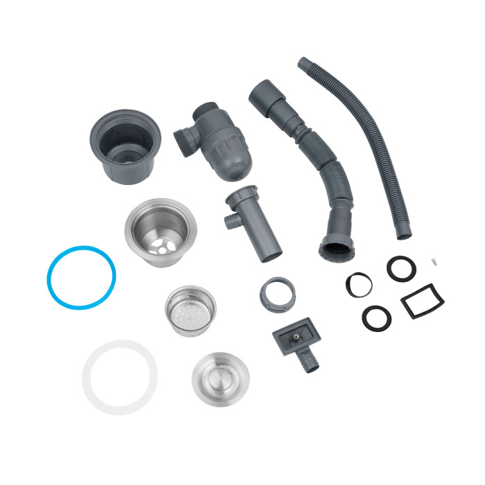 Мийка, сифон, злив-перелив, кошиковий вентиль, кошик.