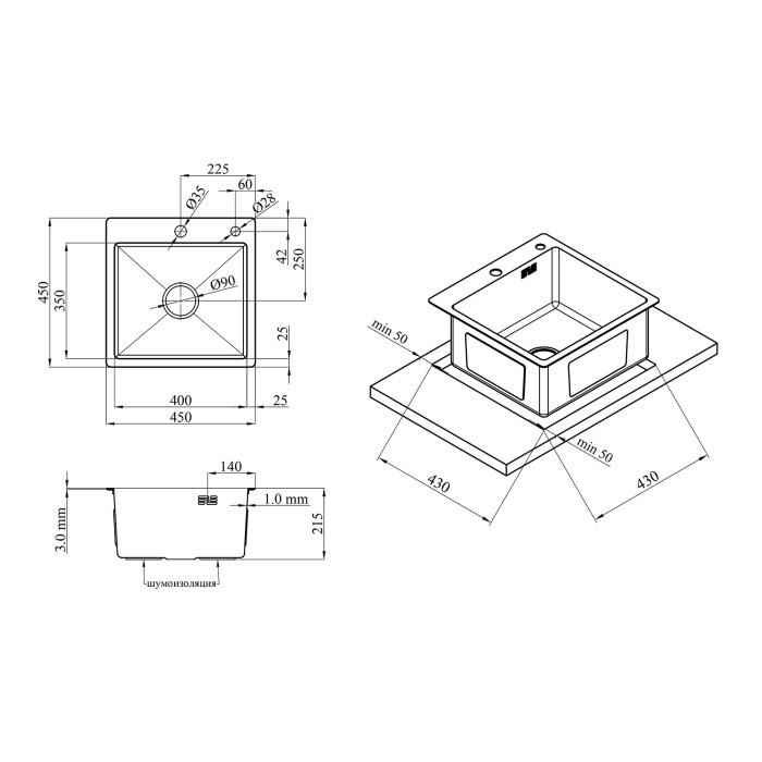 Ця модель оснащена переливом, який запобігає переливу води, та комплектується сифоном, що робить процес встановлення простішим і швидшим. Відсутність крила дозволяє заощадити простір на кухонній стільниці, а наявність отворів під змішувач і дозатор забезпечує максимальний комфорт у використанні. Інтегрований спосіб монтажу дозволяє мийці виглядати як природна частина кухонної поверхні, створюючи завершений вигляд без видимих швів або стиків.