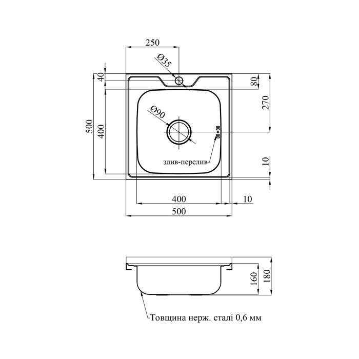 Кухонна мийка накладна Kroner KRP Dekor - 5050 (0.6 мм)