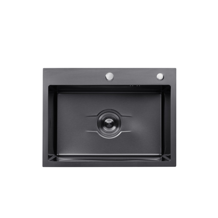 Кухонна мийка Kroner KRP Derby - 5843HM PVD - це ідеальний вибір для вашої кухні, який поєднує в собі стильний дизайн і практичність, допомагаючи вам легко виконувати всі кулінарні завдання і виглядати елегантно при цьому.