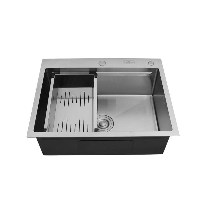 Сифон і коландер: Мийка поставляється з сифоном, обладнаним знімним глибоким кошиком, який запобігає засміченню зливної труби сміттям. Коландер (кошик для фруктів чи овочів) спростить процес підготовки продуктів.