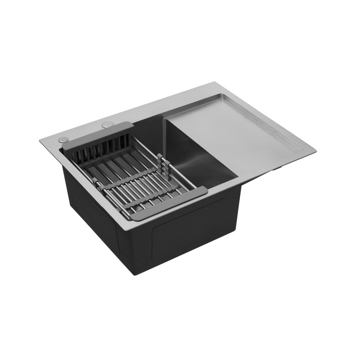 Нержавіюча сталь SUS201. Є отвір для дозатора миючого засобу.