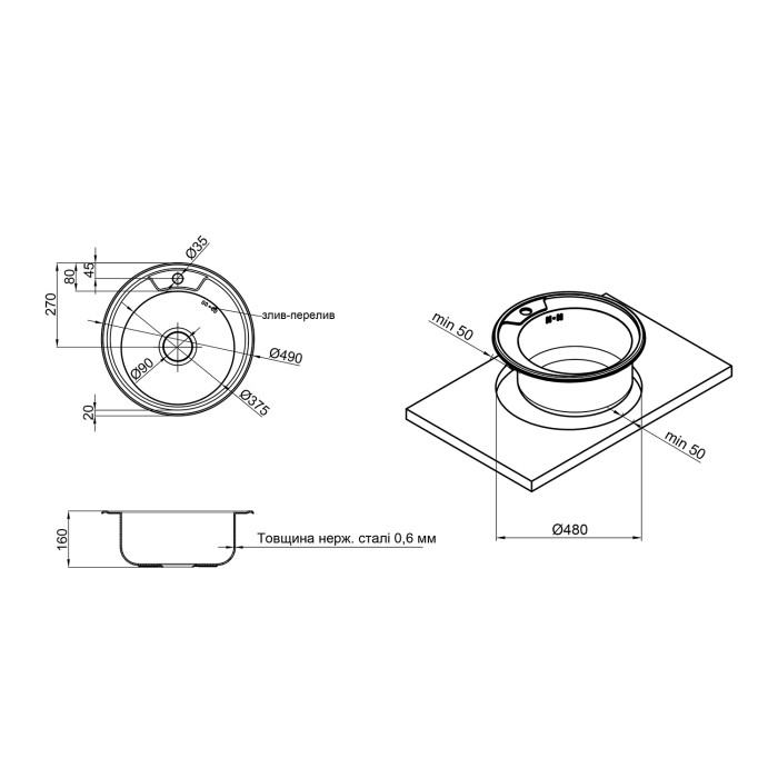 Кухонна мийка Kroner KRP Satin - 490 (0,6 мм) - ідеальне рішення для сучасної кухні. Завдяки своїй круглій формі і стильному дизайну вона впишеться в будь-який інтер'єр. Врізний спосіб монтажу дозволяє безпроблемно встановити мийку. Виготовлена з високоякісної нержавіючої сталі, що забезпечує довгий термін служби і легку очистку. Функціональна, надійна та естетично приваблива - мийка від Kroner стане незамінним помічником у приготуваннях та прикрасою вашої кухні.