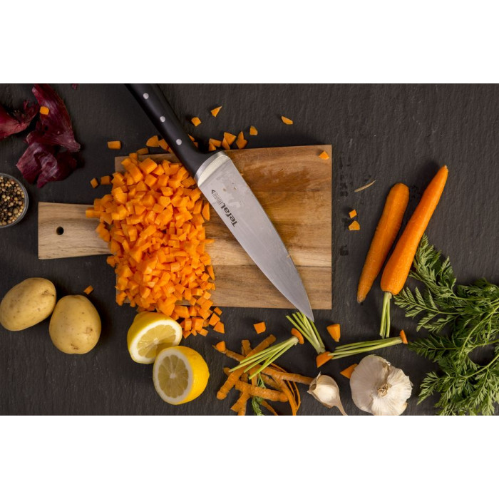 Кухонні ножі Tefal Ice Force: професійна якість і надійність в ваших руках! Виняткова якість нарізання продуктів, довга служба і сучасний дизайн ідеально поєднуються в преміальній серії кухонних ножів Ice Force. Лезо ножа піддається різкому охолодженню до температури -120 ° C відразу після нагрівання, що дозволяє зробити його міцним, надійним і стійким до утворення корозії.