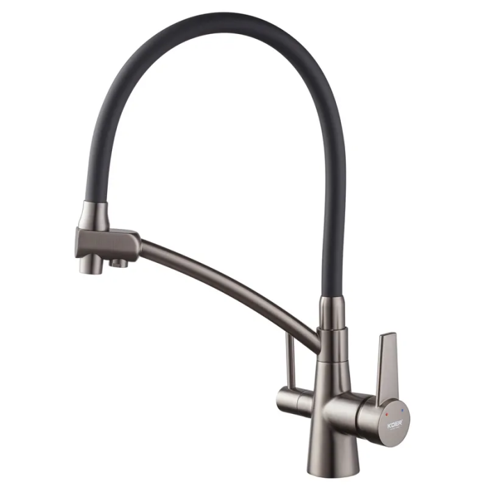 Кухонний змішувач з силік. виливом і вих. для питної води KOER KB-72003-07 (KR3377)
