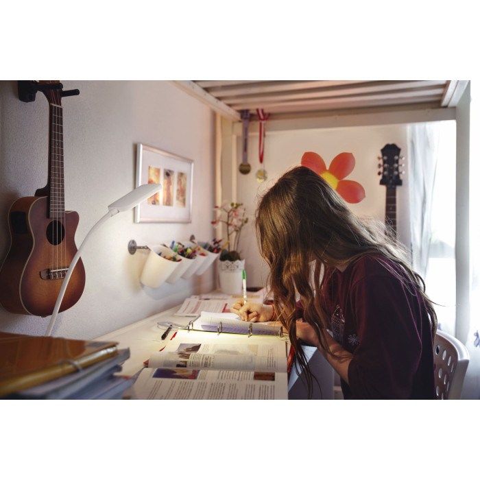 Настільна лампа з акумулятором OSRAM Panan Clip призначена для локального освітлення робочих і побутових зон. Світлодіодний модуль формує світловий потік 80 лм з колірною температурою 4000 K. Вбудована літій-іонна батарея забезпечує автономну роботу без постійного підключення до електромережі. Конструкція з кліпсою передбачає фіксацію лампи на полицях, столах або інших поверхнях. Регулювання яскравості здійснюється за допомогою керування Push-DIM.