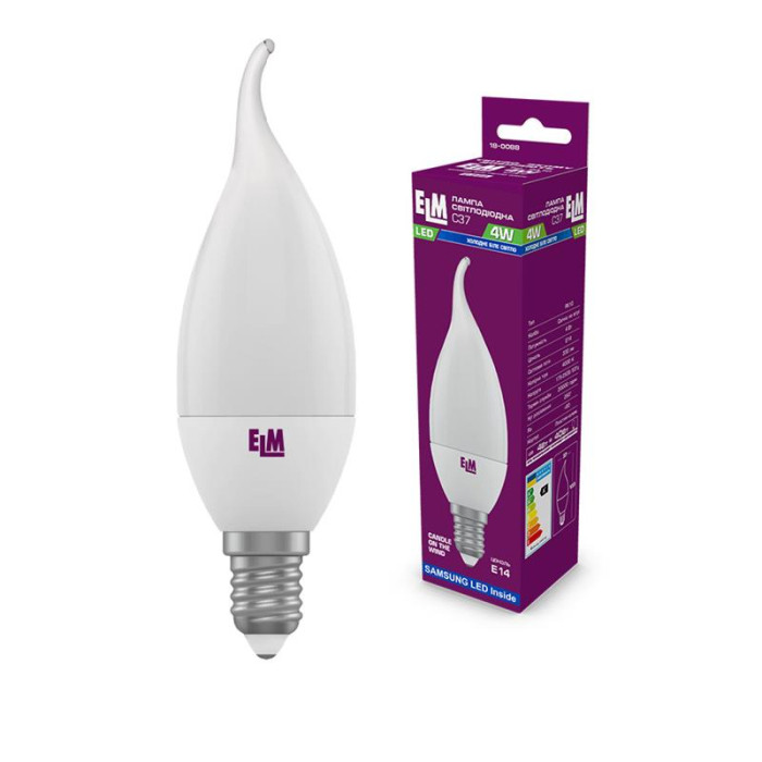 Лампа світлодіодна свічка на вітрі ELM 4W E14 4000K (18-0088)