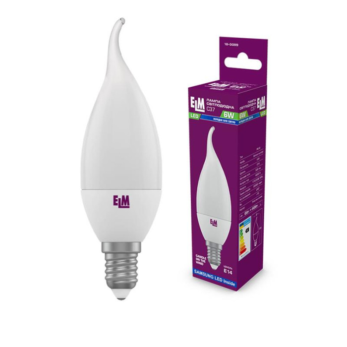 Лампа світлодіодна свічка на вітрі ELM 6W E14 4000K (18-0089)
