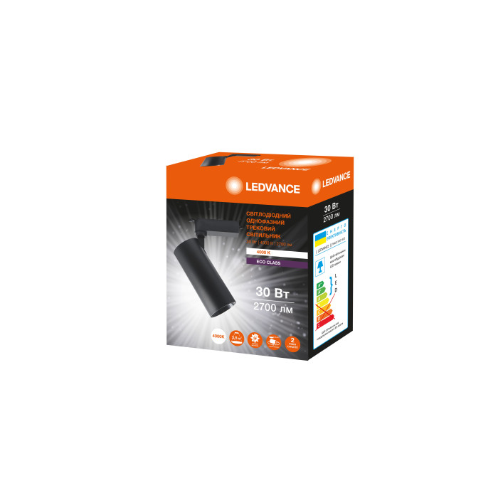 Трековий світильник Ledvance ECO 30Вт забезпечує світло з колірною температурою 4000K та яскравістю 2700 люмен. Має одне джерело світла та призначений для монтажу на шинопровід. Виготовлений з металу та пластику, цей сві... Читать далее...