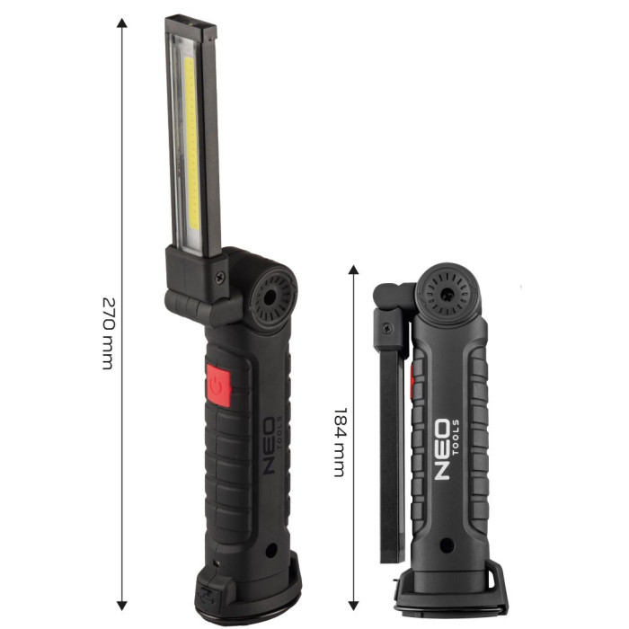 Фонарь инспекционный аккумуляторный Neo Tools, 1200мА·ч, 200лм, 3Вт, 2в1, лампа+фонарь, складывается, 5 функций освещения, красный свет, IP20