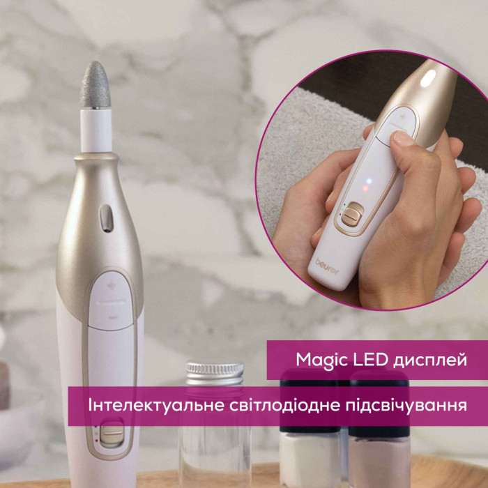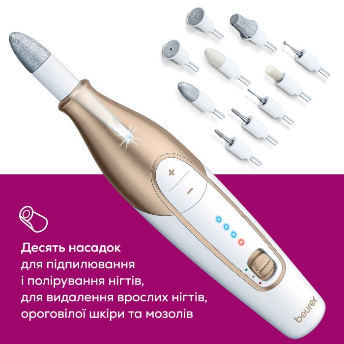 Манікюрний набір Beurer, аккумул., насадок-10, з підсвіткою, біло-золотий