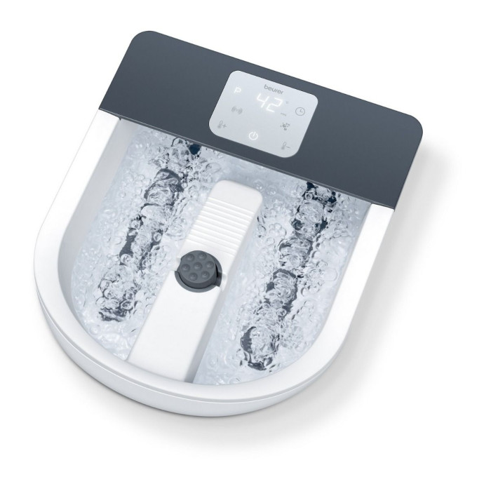 Масажна ванночка Beurer для ніг, від мережі, 3 насадки, підтрим. температури води, сенс. керув., біло-сірий