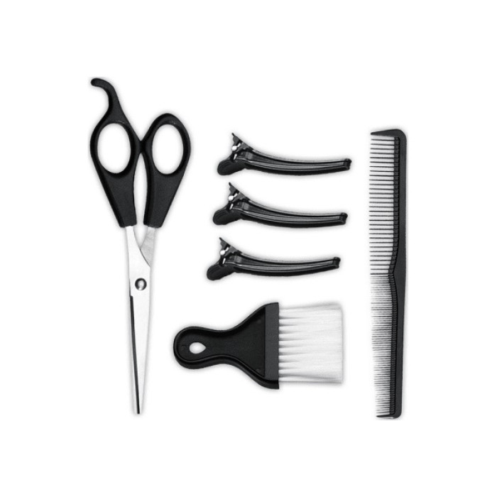 футляр/чохол, ножиці, щіточка для шиї, насадки, перукарська накидка