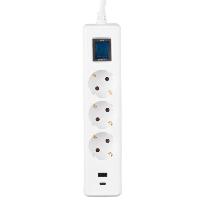 Надійний подовжувач 2Е з кабелем довжиною 3 м і перетином 1,5 мм2 витримує навантаження до 16 А. Оснащений трьома розетками типу F і додатковими роз’ємами USB-A і USB-C для швидкого заряджання мобільних пристроїв. Передбачено вбудований захист від навантаження. Практичне рішення, що поєднує функціональність та зручність для дому та офісу.