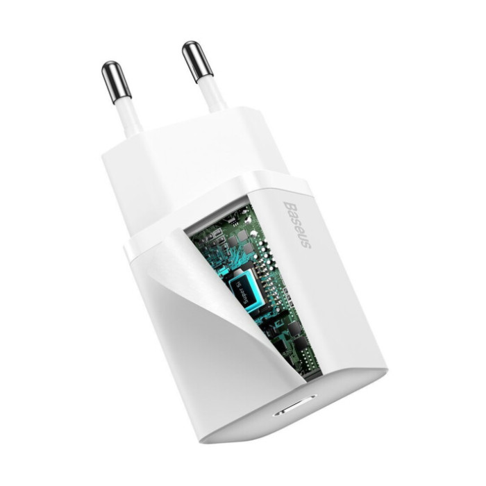 Baseus Super Si Quick Charger 1C 20W — мережевий зарядний пристрій, обладнаний роз'ємом Type-C, має функцію швидкої зарядки, має невеликі розміри та неймовірно легкий — всього 40 грам.