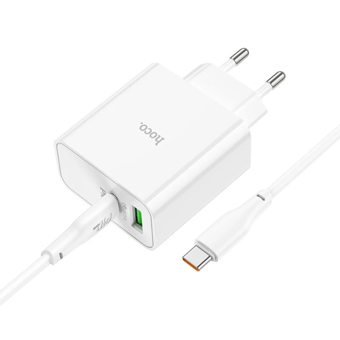 Мережевий зарядний пристрій HOCO C113A Awesome PD65W dual port(1A1C) charger set(Type-C to Type-C) White