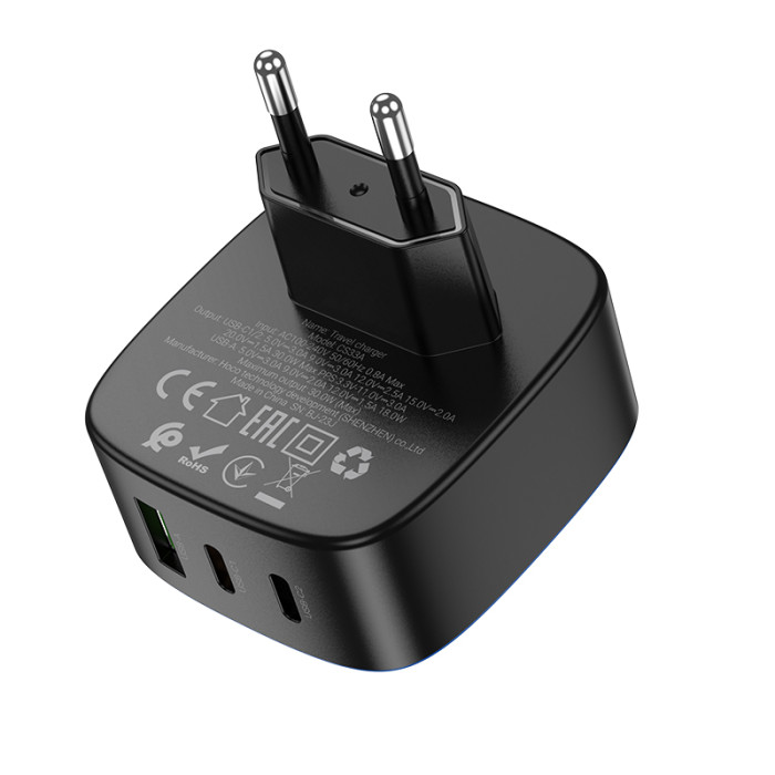 Мережевий зарядний пристрій HOCO CS33A Amanecer PD30W(2C1A) charger Black забезпечує безпечну та швидку зарядку для телефонів, ноутбуків, планшетів, смарт-годинників та браслетів, фотоапаратів та іншої техніки. Володіє високою потужністю зарядки (до 30 Вт на порт) і підтримкою швидкої зарядки, при цьому має компактні розміри.Особливості мережевого зарядного пристрою HOCO CS33A: