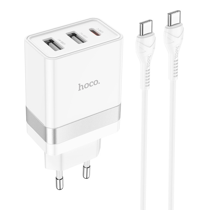 HOCO N21 Pro Tourer PD30W (2A1C) charger set(Type-C to Type-C) White — мережевий зарядний пристрій з 3 роз'ємами та підтримкою швидкої зарядки. В комплекті йде кабель з роз’ємами Type-C та довжиною 1 м.Основні характеристики:− 3 вихідні роз'єми: Type-C+2*USB;