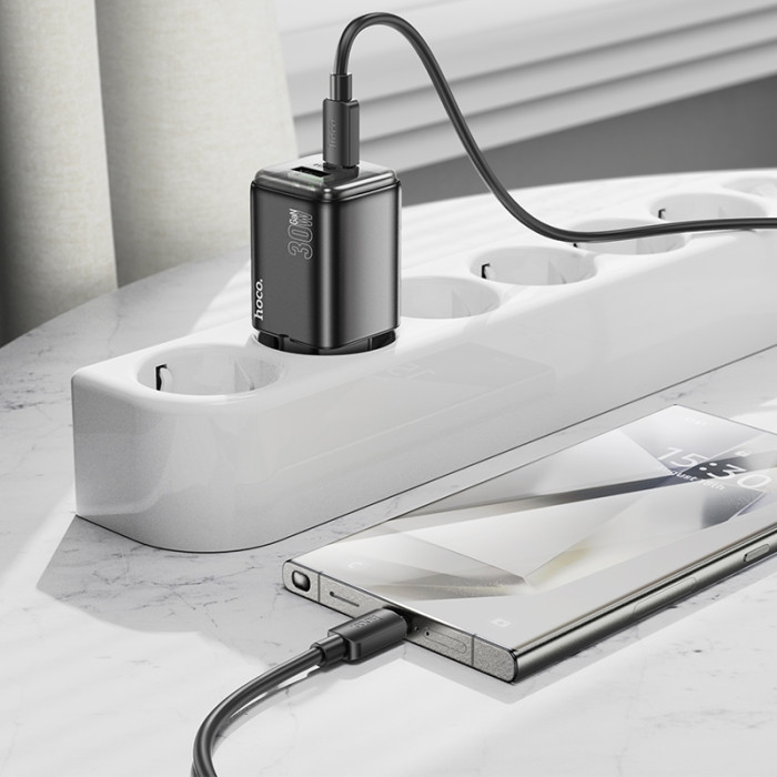 Мережевий зарядний пристрій HOCO N53 Monsoon PD30W+QC3.0 charger set(C to C) Black